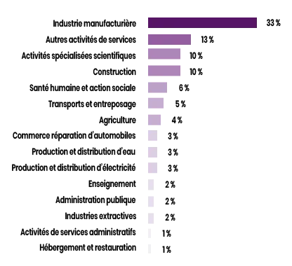 Quelles sont ces organisations au fil desquelles le ou la professionnelle QSE effectue sa carrière ? La réponse est claire : à 91 %, ce sont des entreprises privées. 6 % exercent dans le secteur public. Le secteur privé est, une fois sur trois, celui des industries manufacturières. Le deuxième secteur cité est celui, très large, des services (13 %). Ces entreprises sont, une fois sur deux, des PME de 10 à 249 salariés. Viennent ensuite les entreprises de taille intermédiaire (250 à 4 999 salariés), les grands groupes (plus de 5 000) et les TPE (moins de 10). Tout cela, avec un rattachement le plus souvent au siège, davantage qu’à un site ou à une filiale.