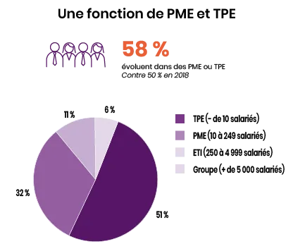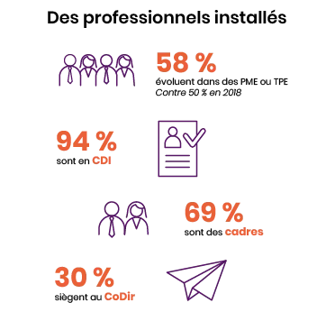 Le salaire, justement : quel est-il ? Le fixe s’élève en moyenne à 47 400 euros bruts annuels, éventuels 13e et 14e mois inclus, et le variable à 4 600 euros. En sept ans, le fixe a augmenté de 6 400 euros. Il s’agit bien d’une moyenne, la tranche de salaire fixe la plus couramment citée étant celle de 50 à 59 000 euros, au gré des tailles d’entreprises. Evidemment, cette rémunération évolue selon que la personne porte le titre de directeur, chef de projet, consultant, ou autre. Le titre de directeur ressort avec un salaire fixe moyen de 77 900 euros, soit 11 700 euros de plus qu’en 2018.